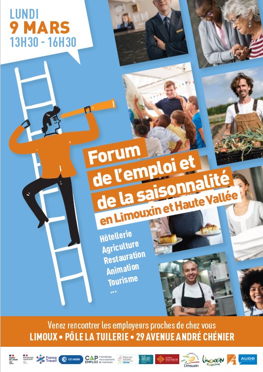 Le lundi 9 mars 2026, un forum de l’emploi et de la saisonnalité se tiendra au Pôle La Tuilerie à Limoux. L’événement permettra de mettre en relation les professionnels du territoire et les candidats, notamment dans les secteurs du tourisme, de l’hôtellerie-restauration, de l’agriculture et de l’animation.